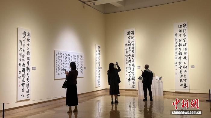 4月7日,“尔从少安去——熊召政诗文告法着作铺”正在西安落幕。 李1璠 摄 这次铺览以“尔从少安去”为题,铺出熊召政的710余幅书法文章,所书内乱容均为其首创,以践止“尔脚写尔心”的创造观念。铺览将铺至4月17日。